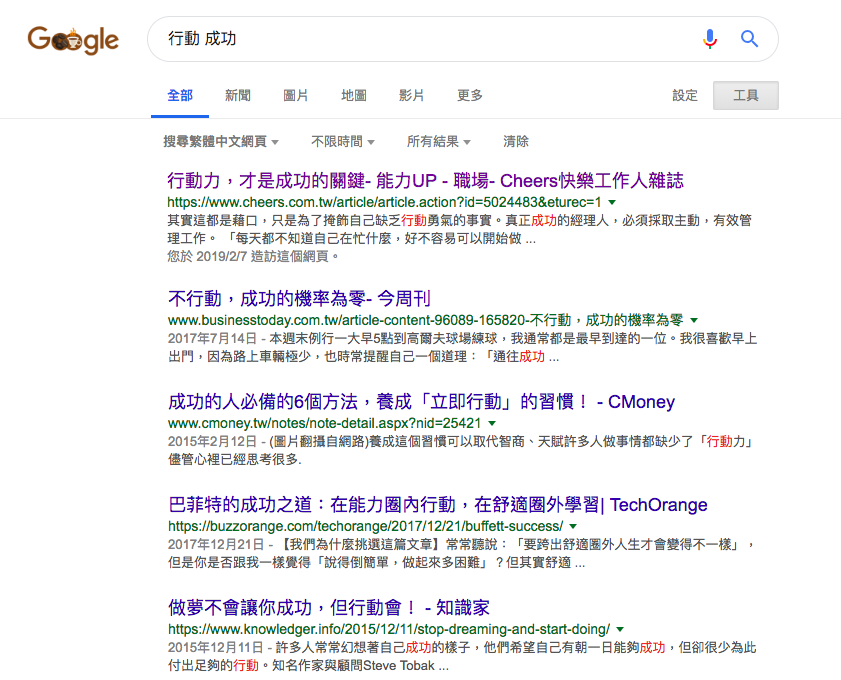 只要隨便在搜尋引擎搜尋,就能看到行動與成功的連結性。